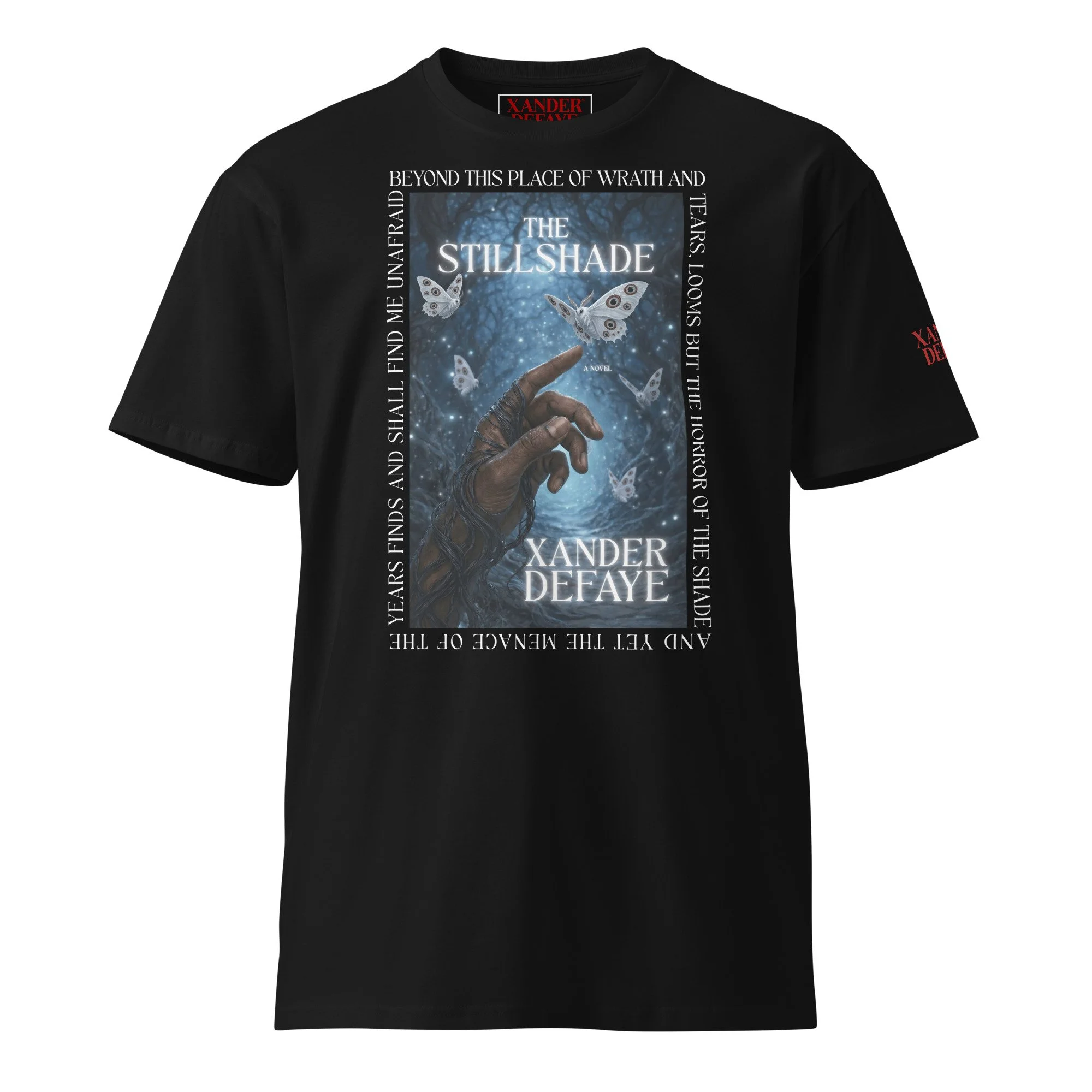 This limited edition Stillshade shirt was created to celebrate the release of the novel by Xander Defaye. Designed for readers and collectors, the shirt represents the world of Stillshade and the story that introduced it.